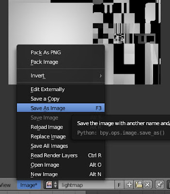 - The UV map should light up like a Christmas Tree. Go to the UV map window and find the Image menu at the bottom. Select Save As Image and save the image in the same folder as the rest of your work in progress files: