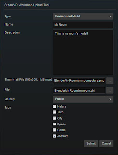 - If there are changes, once the changes are exported with the OBJ model go back to SteamVR menu and choose Workshop: Modify Existing instead. Some of the fields should be filled out with old data, but the Thumbnail file and the File are always required. When you return to the Workshop page, the fastest way to see the changes in SteamVR is to unsubscribe then resubscribe to the same environment. If that still doesn't work, closing and then restarting SteamVR should do the trick.