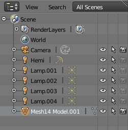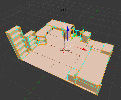 - Switch to Object Mode (it should be in Object Mode at this point), and press A until everything are highlighted orange again. This time, we're grouping all the geometry together - press Ctrl+J. If you look through the Outliner to the top right of the Blender window, there should only be one Mesh object left in the scene; also, instead of having highlighted orange outlining individual objects and some in red while other in orange, you should get a uniform orange outline around everything.
