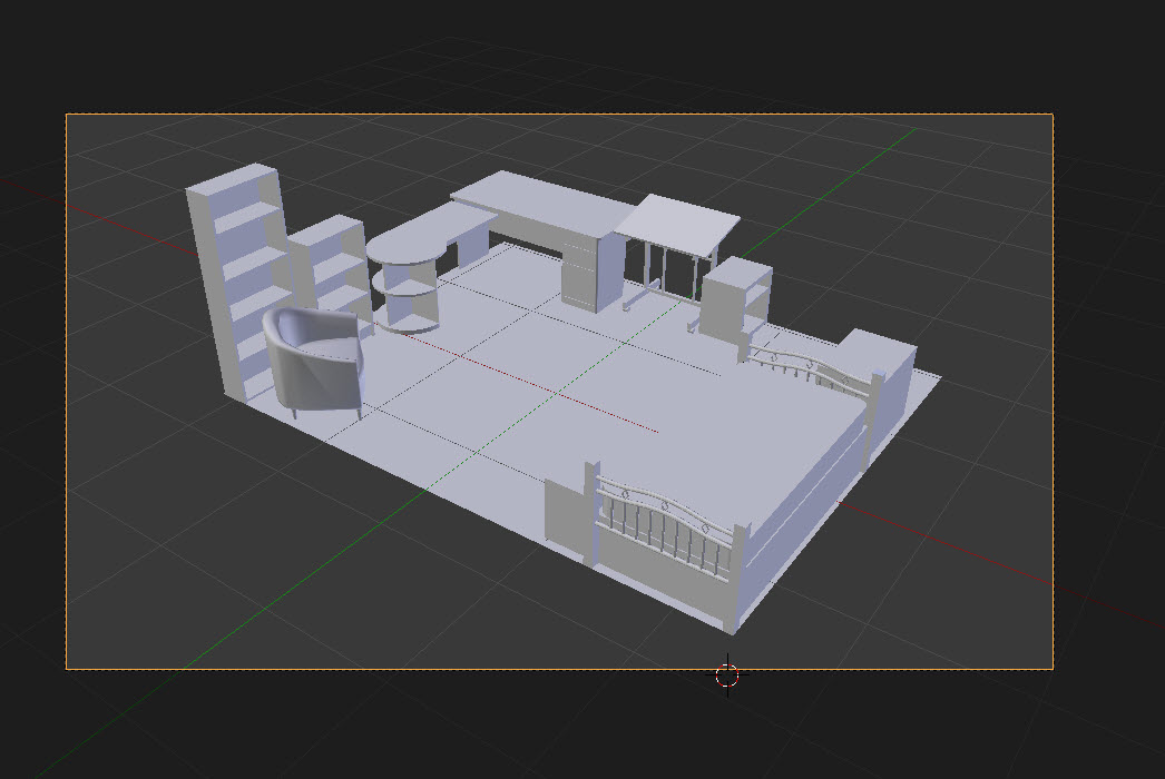 - Ignoring where the camera is sitting now, change your 3D View to show where you'd roughly want to make a render of the room model, and press Ctrl+Alt+Nuimpad 0. This should move the camera object right on top of your current 3D View camera. You should see a rectangle highlight and the rest of the scene darkened. The rectangle is the image that would be rendered by the camera.