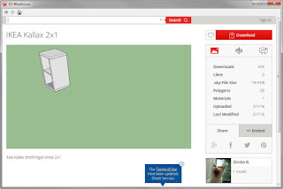 - If you're a lover of Ikea furniture as much as I am, you're in luck - there's a metric ton of people who had already done the work for you. Just go to the Window menu, open the 3D Warehouse, type in the name of your furniture, and 9 times out of 10 there's something for you to download. The key word to watch out for, though, is to-scale. You can fudge an off scale furniture by using the Scale Tool (Press S) and changing the dimensions (remember you can type in exact numbers), but it'll never look as accurate as a to-scale model.