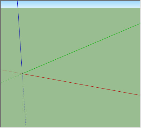 - The positive side of each axis is solid in SketchUp, whereas the negative axis is dotted.