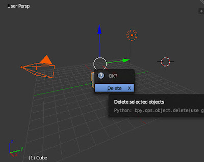 Now is a good time to introduce the two primary modes you'll be using in Blender: Object and Edit Mode (there's other modes as well but let's not bother with those for now). Look to the mid-bottom of the 3D View and you should see it. You can use the drop down to switch between the two modes or press Tab to switch between Edit Mode and the previous non-Edit Mode (in our case, Object Mode)
